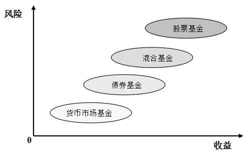 股票基金、債券基金、貨幣市場(chǎng)基金和混合基金的風(fēng)險(xiǎn)收益特征如圖所示。